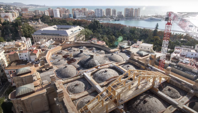 Los trabajos de la Catedral de la Encarnación malagueña tienen su origen en el siglo XVI, con un recorrido salpicado de interrupciones, cambios y reinicios. De forma crónica, la fabrica del templo ya padecía de filtraciones de agua que fueron dañando a los paramentos y sobre todo a las cúpulas.