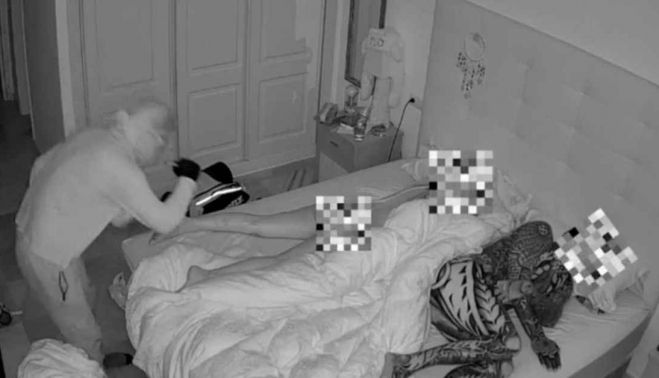 En las imágenes, un hombre accede al domicilio y permanece en su interior durante 32 minutos, pero no actúa como un ladrón convencional. En lugar de buscar objetos de valor, se dirige reiteradamente al dormitorio principal, donde alumbra con una linterna el cuerpo desnudo de Pilar mientras ella duerme junto a Álex. Según el testimonio de la mujer, el intruso entró hasta en ocho ocasiones en la habitación, aparentemente con el único propósito de observarla.