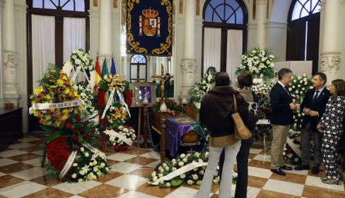El féretro fue colocado en el Salón de los Espejos, acompañado por un retrato del cantaor y rodeado de numerosos arreglos florales enviados por instituciones y particulares. La bandera verde y morada de la ciudad cubría los restos mortales del artista.
