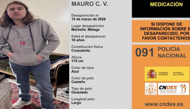 Las autoridades mantienen activada la búsqueda de Mauro, un joven de 18 años, desaparecido desde el pasado domingo 15 de marzo en Marbella. Su rastro se perdió en la estación de autobuses de la localidad malagueña, donde fue visto por última vez, lo que ha centrado las primeras líneas de investigación.
