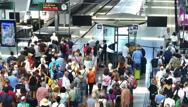 Así está la estación de AVE de Málaga. Una hora de retraso y es inaceptable que el caos ferroviario sea algo habitual.