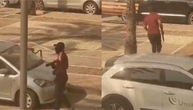 Con varias personas paseando por la calle, el individuo ha disparado con un subfusil automático contra un local comercial de la zona.