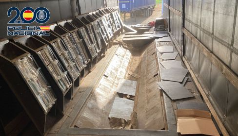 Tras identificar a los dos sospechosos, los investigadores comprobaron que en el suelo del interior del camión había ciertas irregularidades que permitieron descubrir un compartimento oculto en el que se alojaban varios paquetes perfectamente ordenados.