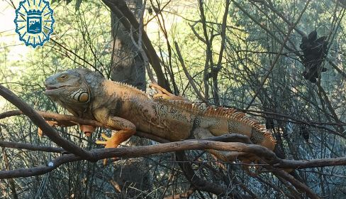 Efectivos de la Policía Local de Málaga han capturado para su recuperación un ejemplar de iguana de más de un metro de longitud y de unos 6,5 kilogramos de peso, en el distrito de Bailén-Miraflores.