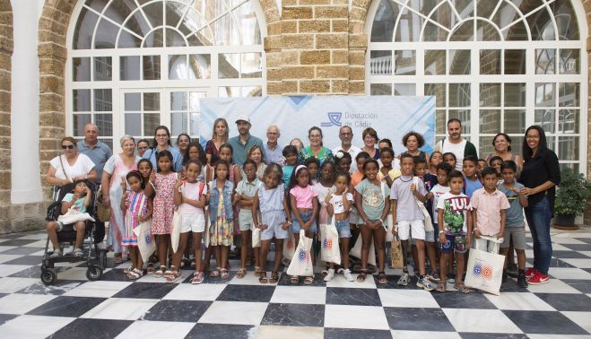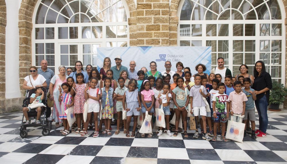Un grupo de niños y niñas saharauis que pasan sus vacaciones en la provincia de Cádiz gracias al programa Vacaciones en Paz ha visitado la Diputación. Ana Moreno, responsable del Servicio de Cooperación Internacional, ha sido la encargada de recibirlos en el Palacio Provincial y les ha trasladado el deseo de que pasen unas vacaciones fructíferas en las que, ha dicho, van a recibir “la atención y los cuidados” de muchas familias.