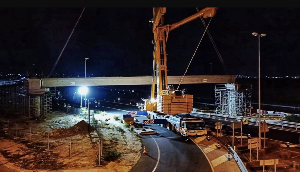 Las vigas se han transportado en vehículos especiales y han llegado a la zona de trabajo en días consecutivos, por lo que se han colocado en las madrugadas del martes y de este miércoles. Para su izado y colocación sobre los neoprenos instalados en las pilas de soporte, se ha utilizado una grúa principal de características especiales por su capacidad de carga, radios de giro y elementos de izado, así como dos equipos de transportes para contrapesos y accesorios con capacidad para 80 toneladas.