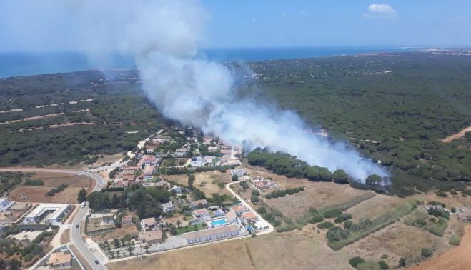 Efectivos del Plan Infoca dan por estabilizado el incendio en el paraje de Roche, en el término municipal de Conil (Cádiz), que se ha declarado sobre las 14:30 horas de este miércoles, por lo que trabajan ya en su control.