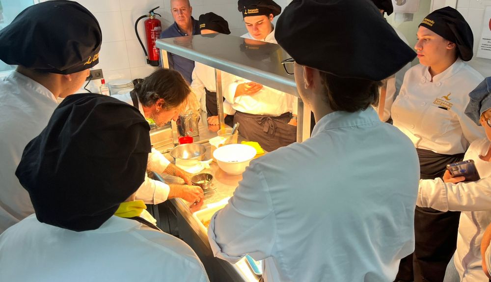 La Escuela de Hostelería de la Diputación de Cádiz ya vive la celebración de su medio siglo de trayectoria. Por sus aulas, cocinas y talleres prácticos ha pasado un alumnado de más de 5.000 personas. Uno de los destinatarios de esta formación fue Alejandro Alcántara Martínez quien, en 2003, se matriculó en el ciclo formativo de grado superior de Restauración. Dos décadas después Ale Alcántara ha regresado a la Escuela, esta vez como reconocido chef y coordinador de un menú que se ha ofrecido a comensales.