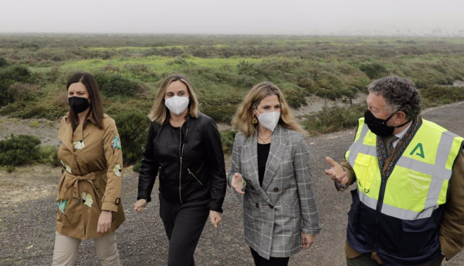 La consejera ha visitado las obras de este nuevo tramo de la ruta Eurovelo acompañada por la alcaldesa de San Fernando, Patricia Cavada, y la primera teniente de alcalde del Ayuntamiento de Chiclana, Ana María González, además de por la delegada de la Junta en Cádiz, Ana Mestre, el secretario general de Infraestructuras, Movilidad y Ordenación del Territorio, Andrés Gutiérrez Istria, y la delegada territorial de Fomento, Infraestructuras, Ordenación del Territorio, Cultura y Patrimonio Histórico en la provincia de Cádiz, Mercedes Colombo.