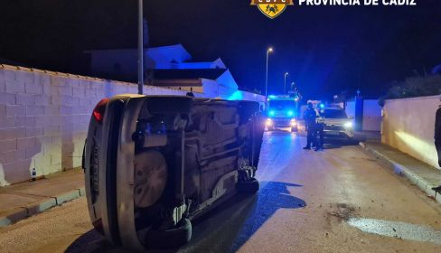 El fin de semana ha dejado un accidente tráfico y un incendio en Chiclana. Por un lado, Bomberos del parque de la citada localidad tuvieron que intervenir de madrugada tras volcar un vehículo en el camino de Águila Real.