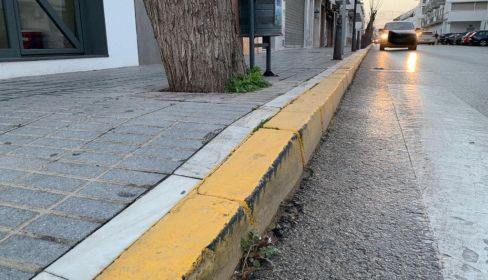Según ha denunciado en un grupo de Facebook, vio cómo una mujer que caminaba con su taca-taca tuvo que coger por en medio de la carretera hasta llegar a la bajada de la exquina de la calle Cerco y Jareta para poder subir a la acera.