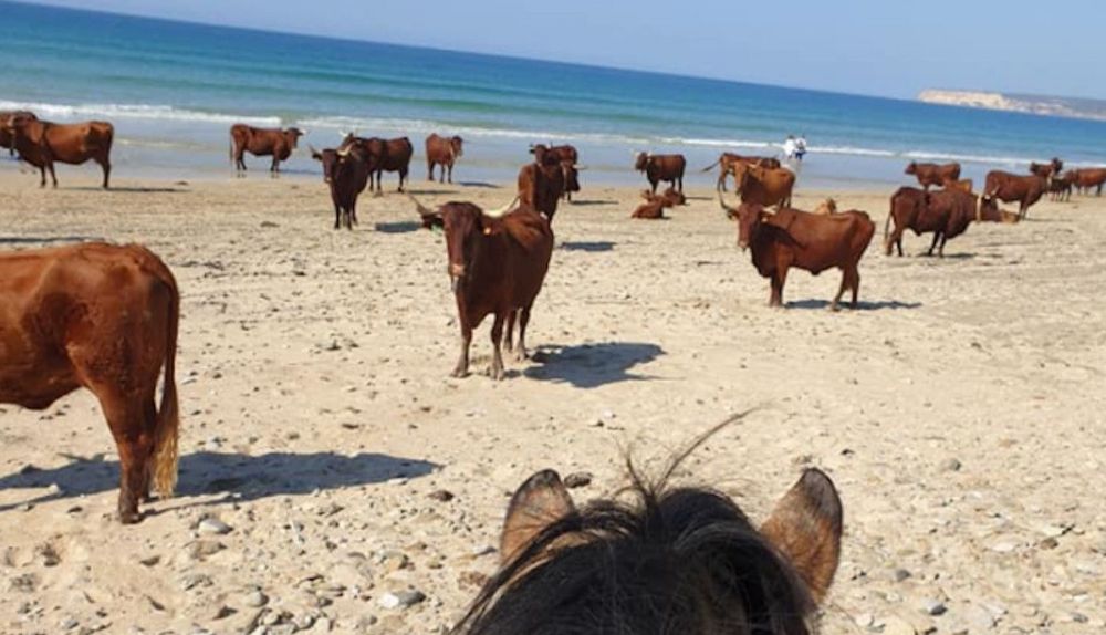 Un vecino de Barbate ha compartido en sus redes sociales la presencia de estas vacas mientras disfrutaba de un paseo a caballo por la playa del Retín. En las imágenes, los animales campan a sus anchas por la orilla, algo que tienen vetado en vacaciones ya que les ponen un alambre para que no puedan bajar a la playa y los turistas tengan espacio en la arena.