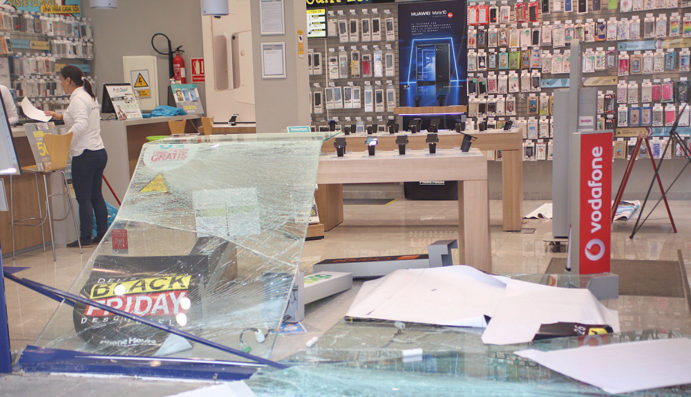Al filo de las cinco y media de la madrugada, unos individuos han acometido un robo en una tienda de la cadena Phone House en pleno centro de Chiclana. El procedimiento seguido para asaltar la tienda ha sido el del alunizaje, que ha provocado graves destrozos en el escaparate del establecimiento. Los autores del robo huyeron del lugar a pie, según ha informado La Voz Digital, llevándose un puñado de móviles de última generación. Igualmente, como ha señalado el canal 8TV en Chiclana, la Guardia Civil investiga el robo, para el que además sus autores habrían robado en la misma noche un coche modelo Seat Ibiza para destrozar la tienda y acceder a su interior para hacerse con el botín.