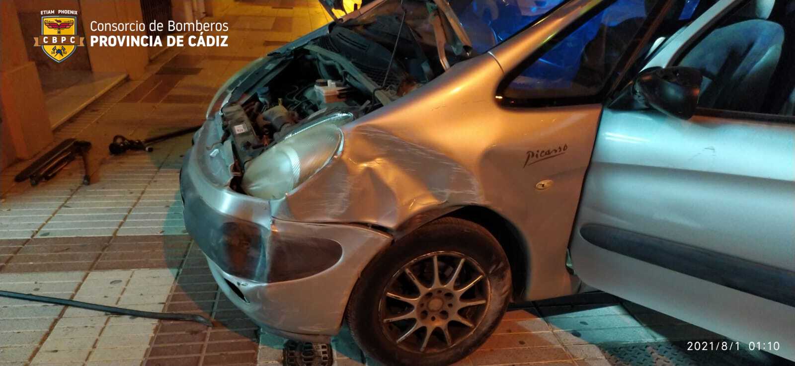 Bomberos del Consorcio del parque de Sanlúcar de Barrameda han intervenido en la pasada noche en un accidente de tráfico ocurrido avenida Cerro Falcón en Sanlúcar. Una conductora de avanzada edad ha colisionado contra la puerta de seguridad y entrada principal de una agencia de viajes. Los bomberos recibieron el aviso de un posible incendio, sin embargo, cuando llegaron se encontraron con esta escena.