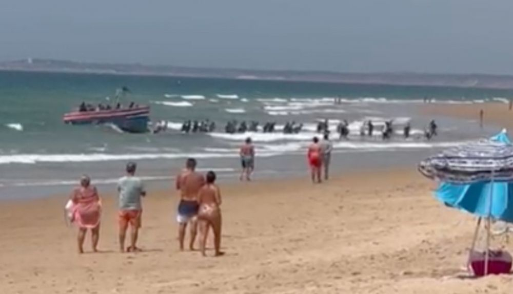 Ante la atenta mirada de los bañistas que estaban pasando un día de playa, cuarenta migrantes procedentes de Marruecos han desembarcado de una patera en la playa de La Mangueta, situada entre Los Caños y Zahora.