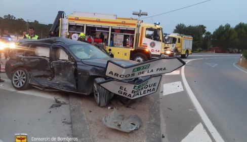 Los efectivos de Bomberos del Consorcio Provincial de Cádiz han tenido que utilizar material de excarcelación, ya que el coche, como se ha dicho, había quedado empotrado con las señales del cruce. Han cortado y manipulado la puerta del turismo, se ha echado hacia atrás el asiento y se ha podido sacar a la accidentada por la puerta trasera.