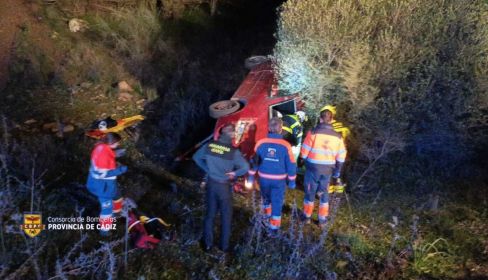 Una noche de Reyes Magos amarga. Una persona circulaba por la A-373 Villamartín-Algatocín cuando ha sufrido un aparatoso accidente en el kilómetro 48,5. Perdió el control y acabó saliéndose de la carretera y cayendo en un arroyo.