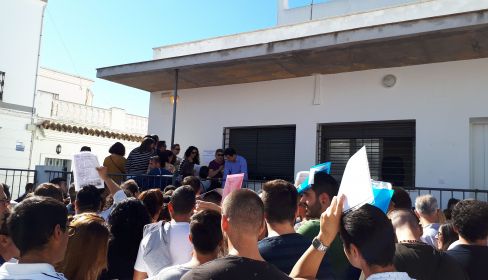“Aquí desde las cinco de la mañana ya había gente haciendo cola”, afirma María, de Chipiona, que, desesperada, aguarda su turno para entregar la solicitud de trabajo. La chipionera llegó a las 8 y media de la mañana y por entonces, explica, las colas para acceder al centro de educación ya alcanzaba los 100 metros. Best Hotels repartió 800 números, que se agotaron poco después de las nueve de la mañana, cuando se abrieron las puertas del recinto. “Al principio se guardaron las colas, pero mira cómo está esto ahora”, lamenta Eva, cuya hermana, Gemma, no pudo coger número a pesar de llegar a las nueve y media.“Esto es una vergüenza”, “esto es un timo” o “nos han tomado el pelo”, son algunos de los chascarrillos que se pueden escuchar entre los presentes. Lo cierto es que, a simple vista, parece que la cadena hotelera no ha previsto tal avalancha de personas, como si no supiera que se quiere instalar en la provincia con más paro de España. Nula presencia de seguridad privada que controle las colas en el interior, mientras en el exterior la Policía Local explica que poco puede hacer al tratarse de un evento “organizado por una empresa privada”.