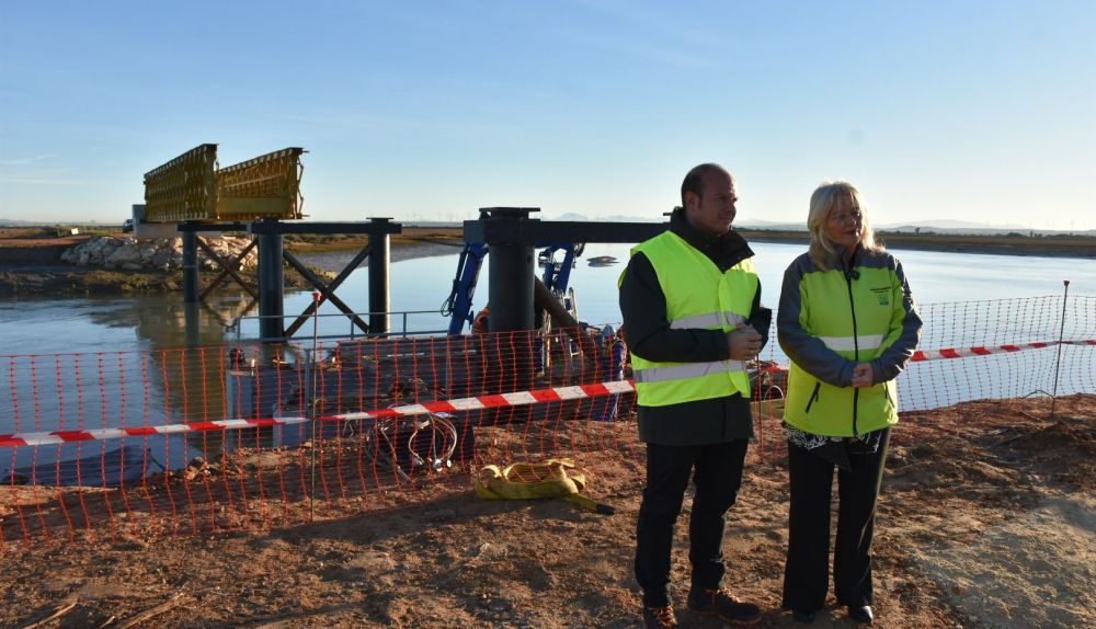 La delegada del Gobierno de la Junta de Andalucía en Cádiz, Mercedes Colombo, junto al delegado de Sostenibilidad, Medio Ambiente y Economía Azul, Óscar Curtido, ha visitado la zona de obras para la colocación del puente de San Alejandro sobre el río San Pedro, en el término municipal de Puerto Real. También ha estado presente el equipo técnico vinculado a estos trabajos, así como el director conservador del Parque Natural Bahía de Cádiz, Rafael Martín.