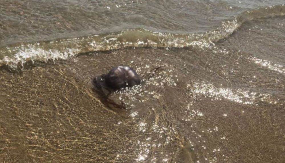 Un vecino en Conil ha alertado de la presencia de una carabela portuguesa en la orilla de la playa. Así, en una imagen hecha pública en redes, muestra al animal siendo arrastrado por las olas y podría estar muerta.