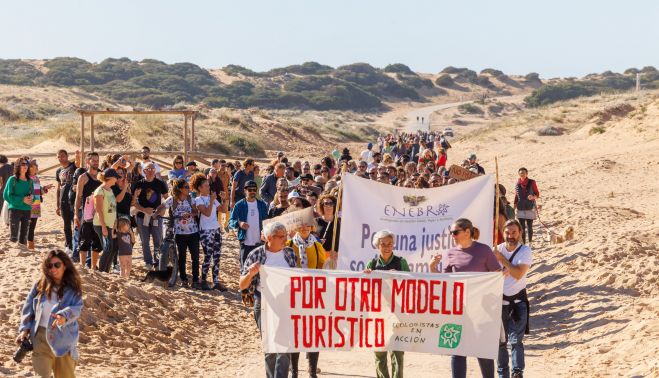 Sumar había presentado esta pregunta en el Congreso de los Diputados el pasado mes de febrero, tras las movilizaciones realizadas por distintos grupos vecinales y ecologistas en el tómbolo de Trafalgar, monumento natural, desde el pasado mes de diciembre.