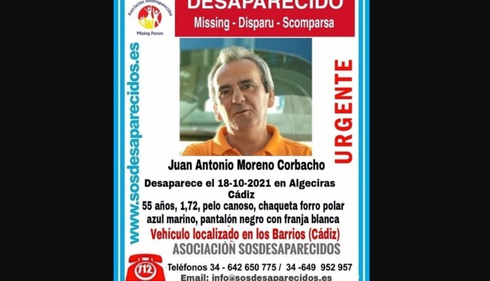 Un hombre de 55 años, Juan Antonio Moreno Corbacho, desapareció en Algeciras el pasado lunes y, desde entonces, no se sabe nada más a excepción, únicamente, de que su vehículo ha sido localizado en Los Barrios.