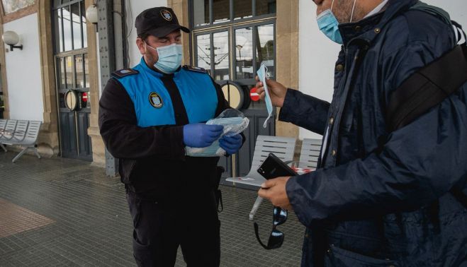 Desde primera hora de la mañana, las Fuerzas de Seguridad y voluntarios de las agrupaciones de Protección Civil han repartido en los principales nodos de transporte público de la provincia de Cádiz, las 276.000 mascarillas entregadas por el Gobierno. Los destinatarios son los trabajadores que se han reincorporado a su trabajo este lunes.