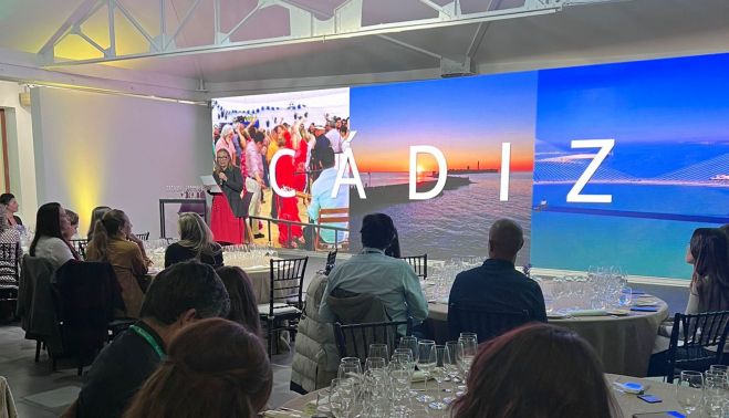La jornada ‘Cádiz, Ocio y Negocio’ desarrollada, celebrada en el espacio Phygital Gallery del centro de Madrid, se ha compuesto de un taller de trabajo entre todos los participantes; una presentación del destino provincia de Cádiz, a cargo del Patronato Provincial de Turismo; y una cena temática, protagonizada por productos gaditanos: atún rojo de almadraba y vinos del Marco de Jerez.