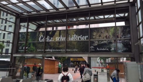 Desde el día 1 de junio en la entrada de la estación de metro de Sarriko en Bilbao está colocado un vinilo de 11,5 x 2,3 metros anunciando la provincia de Cádiz destino de interior e invitando a usar la ruta de Vueling para visitar la provincia. La campaña se prolongará hasta el día 30 de junio. Al usarse un vinilo de doble cara, el anuncio es visible tanto desde el exterior de la estación como desde el interior.