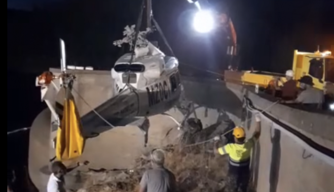 El equipo especializado de la empresa RTS Rotorsun, propietaria del helicóptero, pudo culminar los trabajos después de haber reflotado la aeronave el pasado domingo y haberla estabilizado para terminar de sacarla del embalse durante la tarde del lunes.