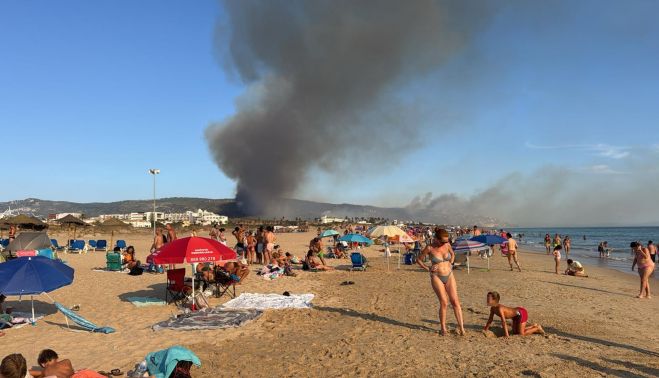 Por la tarde, más de 2.000 personas que estaban en la playa y en hoteles y urbanizaciones como Atlanterra y Montaña de Los Alemanes han tenido que ser evacuados de manera preventiva debido al grave incendio forestal declarado a las 14.20 horas en el paraje Sierra de la Plata en Tarifa.