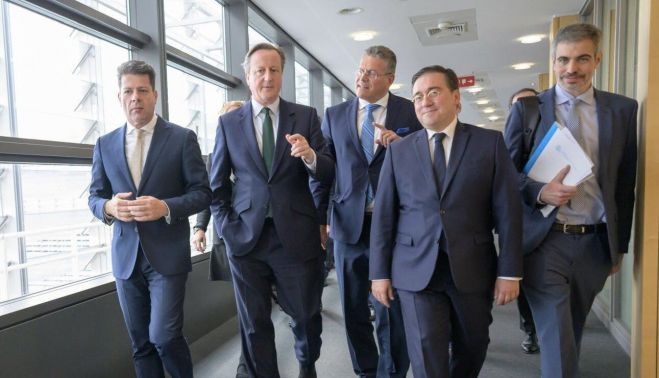 El Gobierno de España y la Unión Europea firmaron este viernes una declaración conjunta, o un comunicado conjunto, para tener postura común ante la reunión a cuatro bandas que se celebró este viernes en Bruselas. Acudieron el vicepresidente ejecutivo de la Comisión Europea, Maros Sefcovic; el ministro de Asuntos Exteriores de España, José Manuel Albares; el ministro de Asuntos Exteriores del Reino Unido, David Cameron, y el ministro principal de Gibraltar, Fabian Picardo.