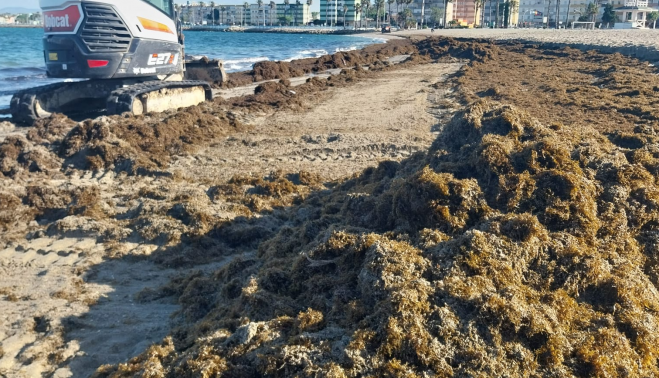 Desde el inicio del año, se han registrado varios episodios de arribazones de algas en las playas del municipio, siendo la playa de Poniente la más afectada.