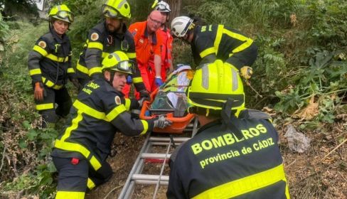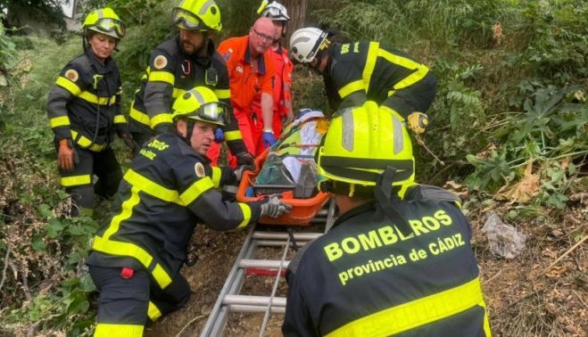 Efectivos del Consorcio de Bomberos de la Provincia de Cádiz (CBPC) se desplazaron al lugar del incidente desde el parque de bomberos de Algeciras. Una vez inmovilizado el herido por los servicios sanitarios, los bomberos colaboraron en su traslado hasta la ambulancia utilizando una camilla nido y una escalera corredera para facilitar la operación en un entorno con acceso dificultoso.