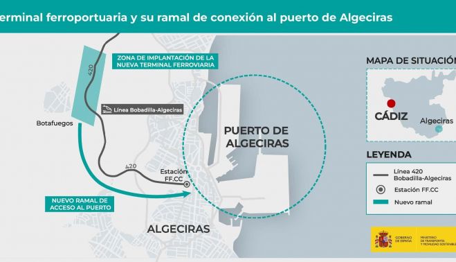 El Ministerio de Transportes y Movilidad Sostenible ha encomendado a la empresa pública Ineco la redacción de un estudio informativo para la construcción de una nueva terminal técnica ferroportuaria en el Puerto de Algeciras (Cádiz). Este proyecto, cuyo coste asciende a 281.479 euros, tiene como objetivo prioritario potenciar el tráfico ferroviario de mercancías y mejorar la intermodalidad e interoperabilidad de la infraestructura portuaria. El estudio tendrá un plazo de ejecución de 16 meses, tras el cual se procederá a la redacción del proyecto definitivo.