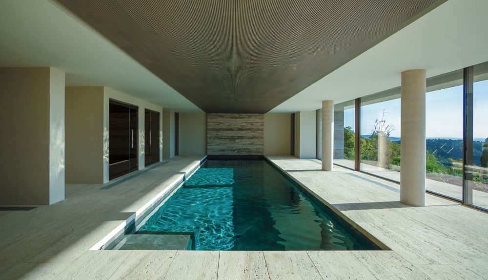 En el nivel superior se situarán los seis dormitorios en suite restantes y una oficina. Más abajo se desplegará un amplio espacio dedicado al wellness, que incluirá piscina interior climatizada con cascada, sauna, gimnasio, baño turco, sala de cine, bodega, salón y bar junto a la piscina. Todas las estancias tendrán acceso directo a porches, jardines y a la piscina infinita de varios niveles.