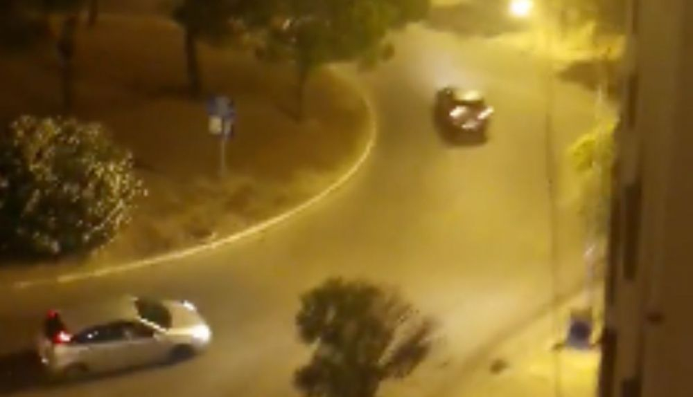 Dos de la madrugada en Puerto Real. Dos jóvenes se ponen a derrapar y dar vueltas en una rotonda del Río San Pedro.