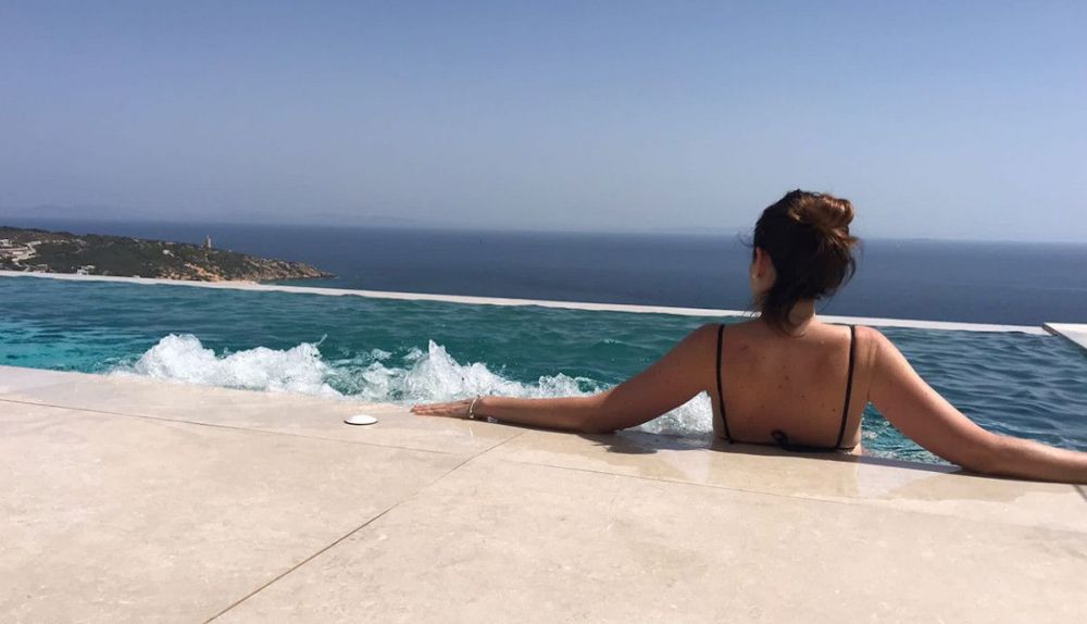 Con vistas panorámicas al océano Atlántico y a la ciudad de Tánger, en el horizonte, la villa se orienta hacia el sur, con una localización privilegiada frente a la Playa de los Alemanes. La casa dispone de una piscina infinita colgada sobre el mar, rodeada de tumbonas y camas balinesas, ideales para el descanso y la contemplación. Todo el complejo ha sido diseñado para ofrecer una experiencia de máximo confort con el mínimo impacto ambiental.