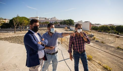 El alcalde de Trebujena Jorge David Rodríguez Pérez y el tercer teniente de alcalde y delegado de Servicios Municipales, Obras Públicas, Urbanismo y Contratación Menor, José Miguel Pérez, han acompañado a Miguel Rodríguez, delegado territorial de la Junta de Andalucía en Cádiz de Regeneración, Justicia y Administración Local, durante una visita a las obras que se realizan con fondos del PFEA en la zona verde del Morisco Alto.