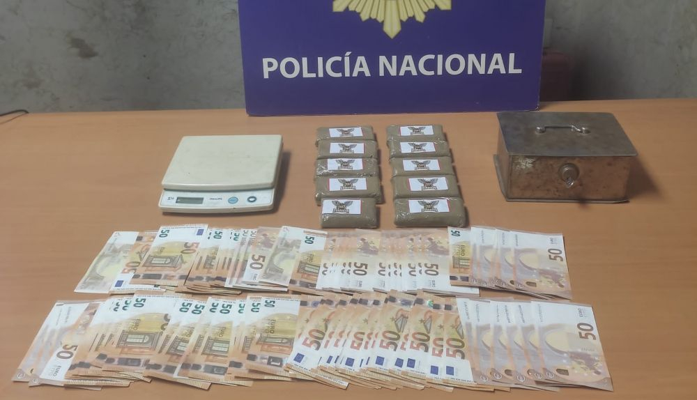 Seguidamente y tras localizar e identificar a los propietarios, se inició la inspección del bar en presencia de estos, localizando en una estantería bajo la barra y cubierto por una bolsa negra, una bolsa de papel que contenía en su interior 9 unidades de sustancia prensada de color marrón en forma de “ladrillo” que por el olor que desprendía evidenciaba su naturaleza cannábica (hachís), hallando una décima unidad idéntica a las anteriores en el fregadero, pero en este caso abierto y con signos de haber sido desprovisto de un fragmento, presumiblemente para su venta. Además, se localizó en una estantería cercana una balanza de precisión, lo que corroboró la posible participación en una actividad ilícita.