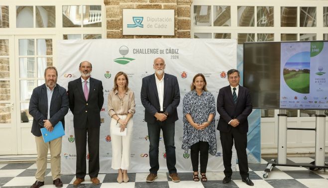 La provincia vuelve a ser el escenario escogido para la disputa de un evento deportivo de primer nivel. Se trata del Challenge de Cádiz 2024 de golf, que se disputará entre el 6 y el 9 de junio en el Iberostar Real Club de Golf Novo Sancti Petri de Chiclana. La Diputación de Cádiz ha acogido la presentación de esta prueba, en un acto en el que han participado el vicepresidente segundo y responsable del Servicio de Deportes de la Diputación de Cádiz, Javier Vidal; Tania Barcelona, delegada territorial de Turismo, Cultura y Deporte de la Junta de Andalucía en Cádiz; Ana María González Bueno, primera teniente de alcalde del Ayuntamiento de Chiclana; Pablo Mansilla, presidente de la Real Federación Andaluza de Golf; Rafael Hernández Alcalá, gerente de Iberostar Real Club de Golf Novo Sancti Petri; y Javier Gervás, director general de JGolf.