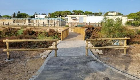 El Ayuntamiento de Chiclana, a través de la Delegación de Vías y Obras, ha instalado una nueva pasarela peatonal sobre el arroyo Carrajolilla a la altura de la EDAR de La Barrosa y que conecta las urbanizaciones Cerromolino y Doña Violeta. Una pasarela que sustituye a la hasta ahora existente y que se encontraba en mal estado de conservación.