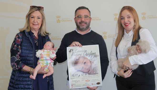 El delegado municipal de Fiestas, Fede Díaz; la vicepresidenta de la Asociación de Reyes Magos de Chiclana, Juani Verdugo, y la responsable de la organización de la muestra, Paula Rodríguez, han presentado la cuarta edición de la exposición Reborn Chiclana, que se desarrollará del 10 al 12 de noviembre en las instalaciones del Centro de Iniciativas Juveniles Box.