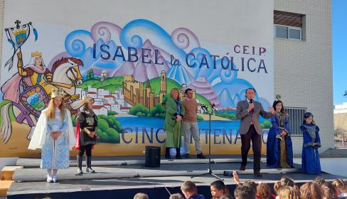 El alcalde de Chiclana, José María Román, ha presidido este martes el acto de descubrimiento de un mural conmemorativo con motivo del 50 aniversario del CEIP Isabel La Católica. Un acto que se ha celebrado en el propio centro educativo y en el que también han estado presentes representantes del centro, encabezados por su director, Francisco Castilla; la delegada territorial de Educación, Isabel Paredes; el delegado municipal de Educación, José Alberto Cruz, así como miembros de la Corporación municipal, antiguos profesores y directores y representantes de la AMPA y alumnos.