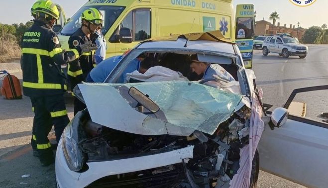 Según ha informado el Consorcio de Bomberos de la Provincia de Cádiz, el impacto fue un choque frontolateral entre dos turismos, un siniestro de gran violencia que obligó a desplegar un importante operativo de rescate.