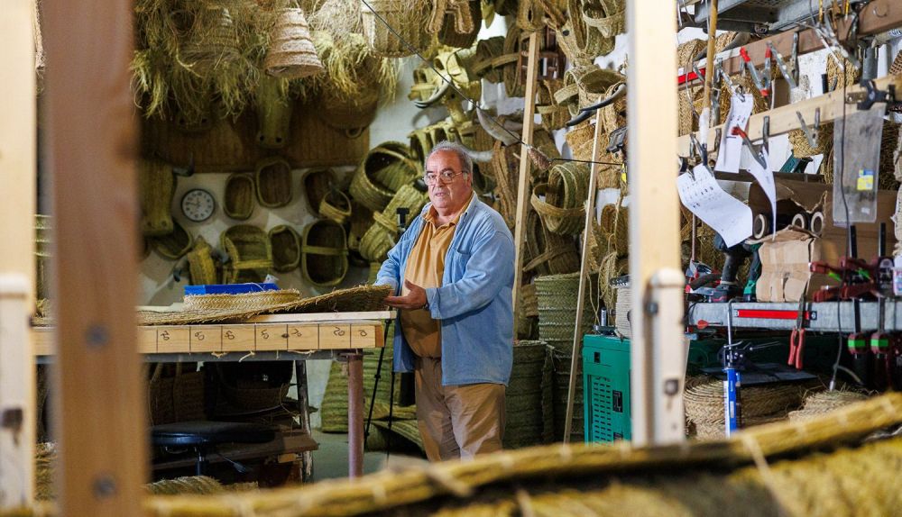 Su simpatía y su maestría con el esparto engancha tanto que el 90% de sus pedidos vienen de las redes sociales. El resto salen del taller, repleto de objetos. “Aquí hay para distraerse”, dice dando una vuelta.