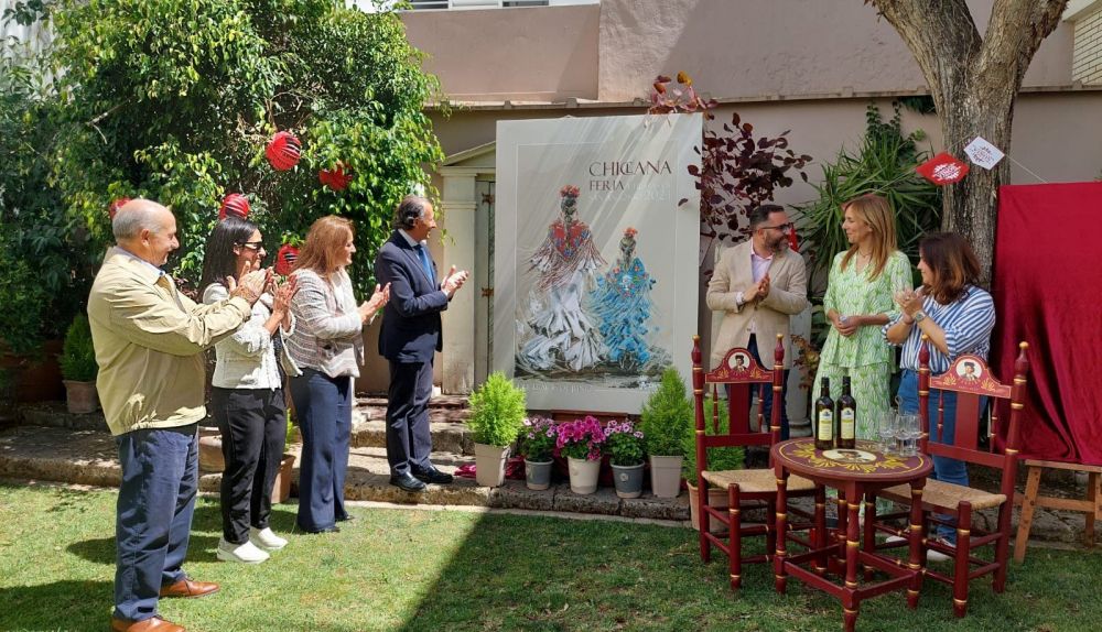“En cuanto al cartel, quisimos darle protagonismo desde el primer momento a la mujer vestida de flamenca y, por supuesto, a la imagen de Chiclana, de ahí que en los mantones aparezcan los racimos de uva y la ermita de Santa Ana, además de utilizar los colores institucionales del Ayuntamiento”, ha indicado Andrea Galindo, que ha añadido que “la pintura está realizada en acrílico con pastel”. “Chiclana siempre ha tenido una feria muy familiar y, por ello, es muy importante mantener las tradiciones y transmitirlas de padres a hijos”, ha dicho.