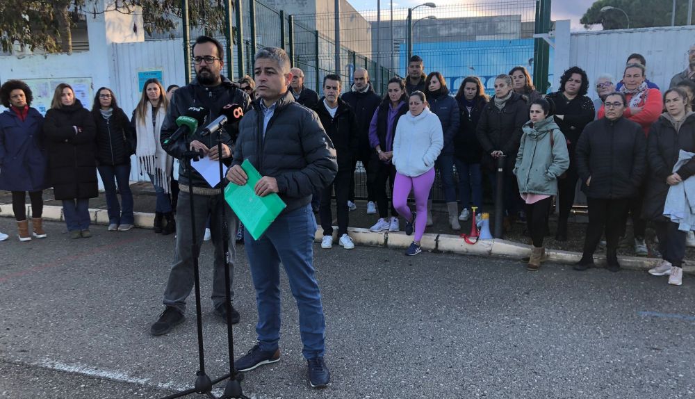 Lanza leyó ante una representación de alumnos, en la calle, frente al colegio al que acuden un manifiesto que refleja "las inquietudes de las familias que ven crecer su comunidad escolar en uno de los colegios más grandes de Chiclana".