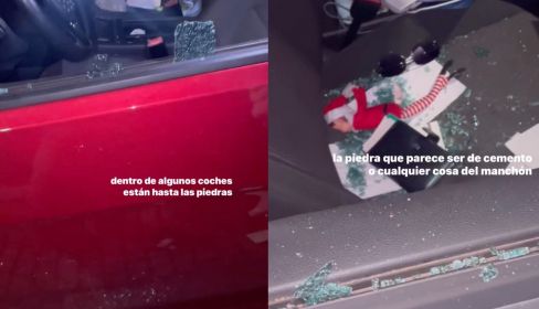 Algunos residentes aseguran haber escuchado fuertes golpes durante la noche y, al salir a la calle, se encontraron con sus vehículos dañados, cristales hechos añicos y piedras tanto dentro como fuera del coche. Las imágenes mostraban el rastro del ataque: fragmentos de vidrio, piedras esparcidas y puertas entreabiertas tras un posible intento de robo.