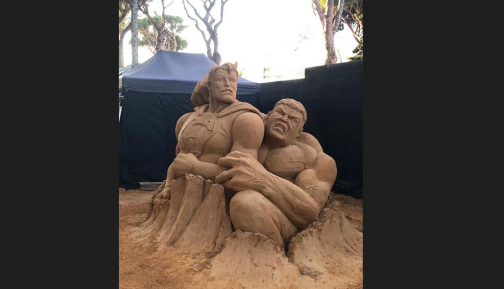 Una gran exposición de esculturas de arena con réplicas de arena de la Gran Esfinge de Guiza, figuras mitológicas, el castillo de Sancti Petri, superhérores de Marvel y DC y personajes infantiles.